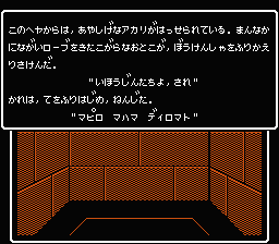 突然だがそろそろワードナに戦いを挑む決心をした。これまで躊躇し続けてきた理由は、Wizardryではシナリオのクリア、即ちワードナを討伐する事がさほど重要では無い事と、バンパイアのせいで前衛のレベルが一向に安定しない事もあるが、ワードナ戦で自己に課すルールの制定、即ちハマンとマロールの使用を許可するかを決められずにいたからである。 ハマンに関する考察 ハマンはマロールを併用すれば裏技になるが、通常発揮される効果は自らのレベルを代償に得られる正当なものである。しかし余りにも絶大な効果なのでハマンを使用すればかなりの割合でワードナにあっけなく勝利出来てしまう。 マロールに関する考察 全滅の危機に晒された場合、ワードナ戦は逃げる事が出来ないので絶望的不利の中で戦闘を続けるよりはマロールによる脱出を考えるのが普通だ。通常なら問題無い選択なのだがこれがエナジードレインを受けた状態だと問題で、いわゆる「ドレイン封じ」の裏技になってしまう。 考えた結果、今まではどちらも使用を認めていたのだが、今回はどちらも禁止とする事にした。最悪の場合を想像するだけで恐ろしくて震えるが、その代わりマリクトやティルトウェイトはガンガン使うぞ。 |